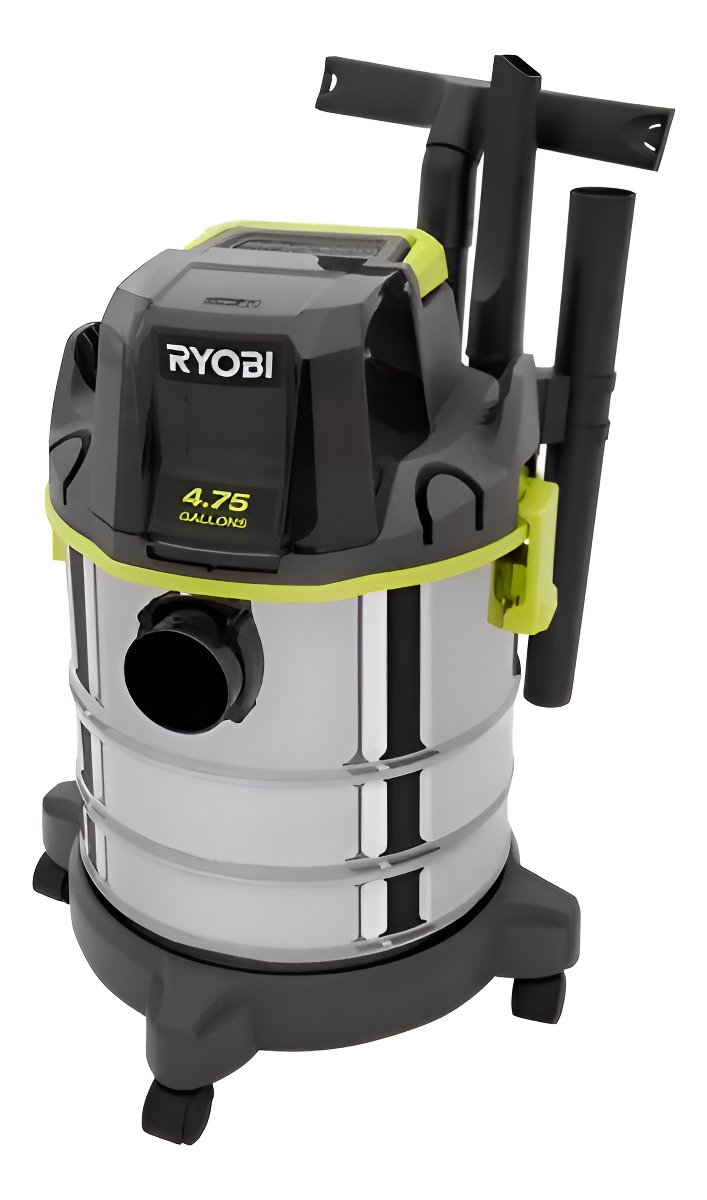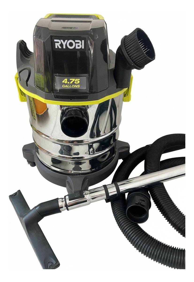 La aspiradora Ryobi PWV200 18V ONE+ de 4.75 galones para seco y húmedo es una herramienta inalámbrica potente con un tanque de acero inoxidable de 4.75 galones. Ofrece 40 CFM de flujo de aire para una limpieza eficiente. Incluye manguera, boquilla para pisos, boquilla para ranuras y varillas de extensión. Es parte del sistema Ryobi ONE+ (batería y cargador se venden por separado).