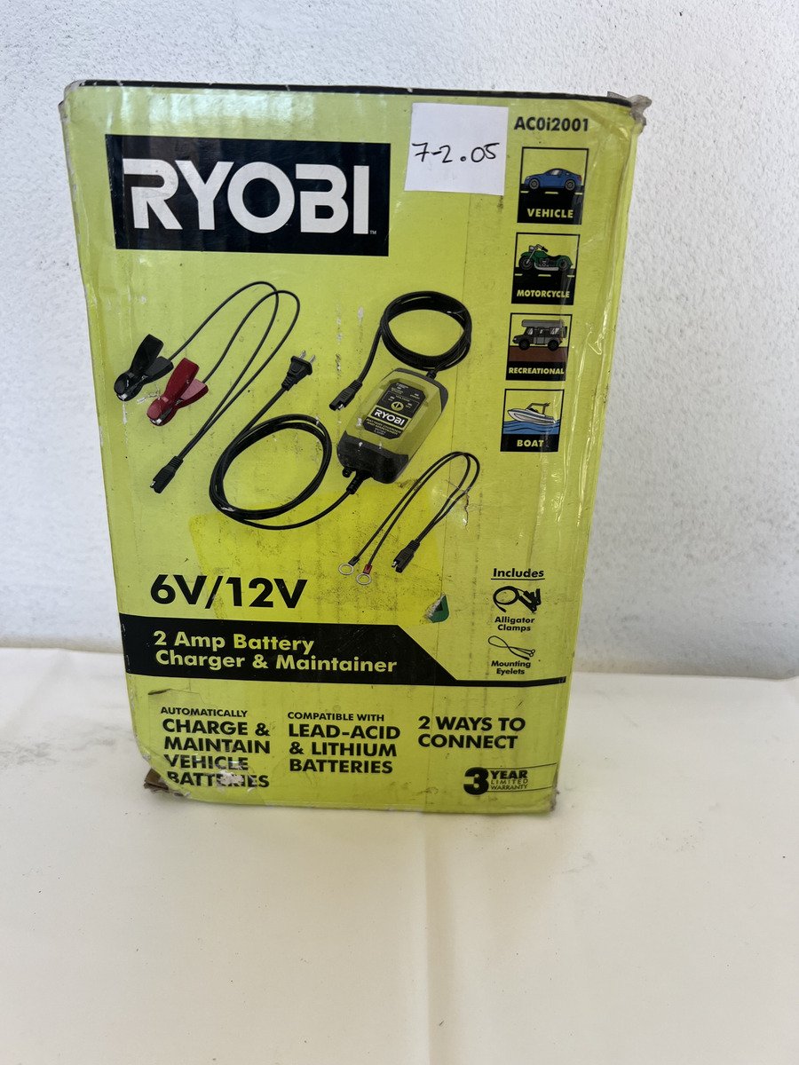 El Cargador y Mantenedor de Batería RYOBI de 2 Amperios (Modelo AC0i2001) es la solución ideal para evitar que las baterías de sus vehículos se descarguen por falta de uso.