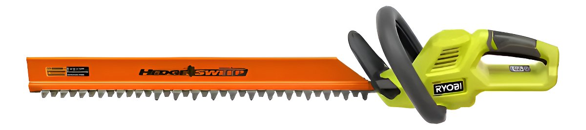 Cortasetos inalámbrico Ryobi de 40V con cuchilla de 24 pulgadas, ideal para recortar setos y arbustos sin la molestia de cables. Es parte del sistema Ryobi 40V, lo que permite usar cualquier batería Ryobi 40V. Se vende como herramienta sola.