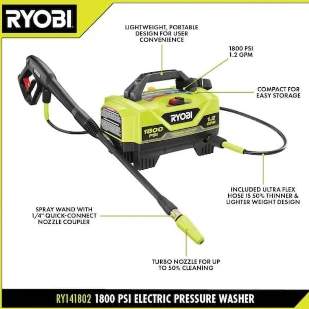 Hidrolavadora Eléctrica 1800 Psi 1,2 Gpm Ryobi Ry141802