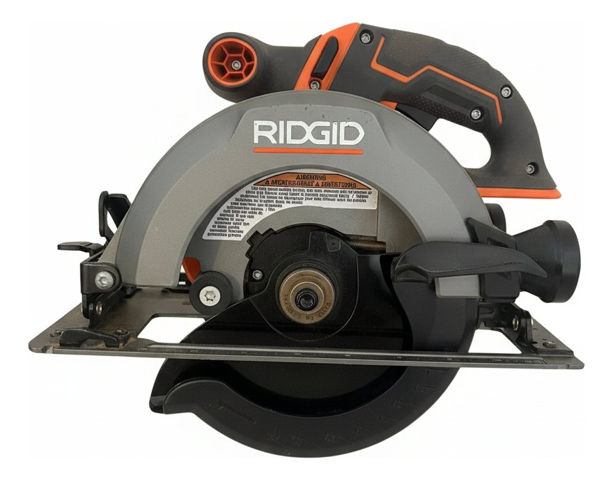 Sierra circular inalámbrica RIDGID R8655 de 18V con disco de 6-1/2 pulgadas. Ofrece hasta 3,700 RPM y una capacidad de bisel de 50°. Incluye freno de hoja electrónico, base de aluminio resistente y luz LED para mayor visibilidad. Compatible con aditamentos de aspiradora. Se vende solo la herramienta (batería y cargador se venden por separado).