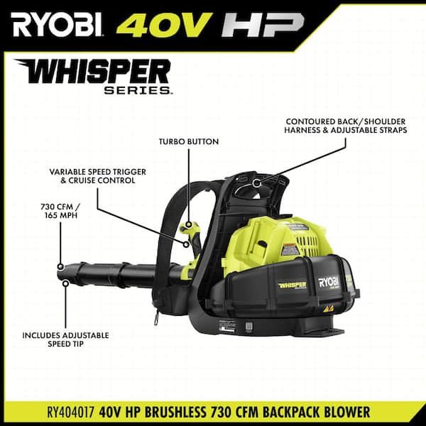 Sopladora Ryobi 40v Hp Ry404017 Mochila 165 Mph Sin Bateria