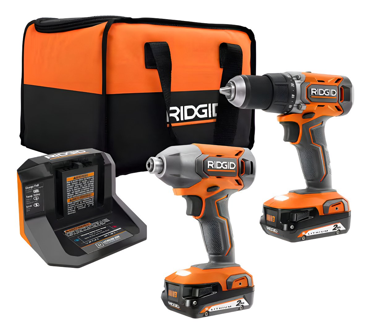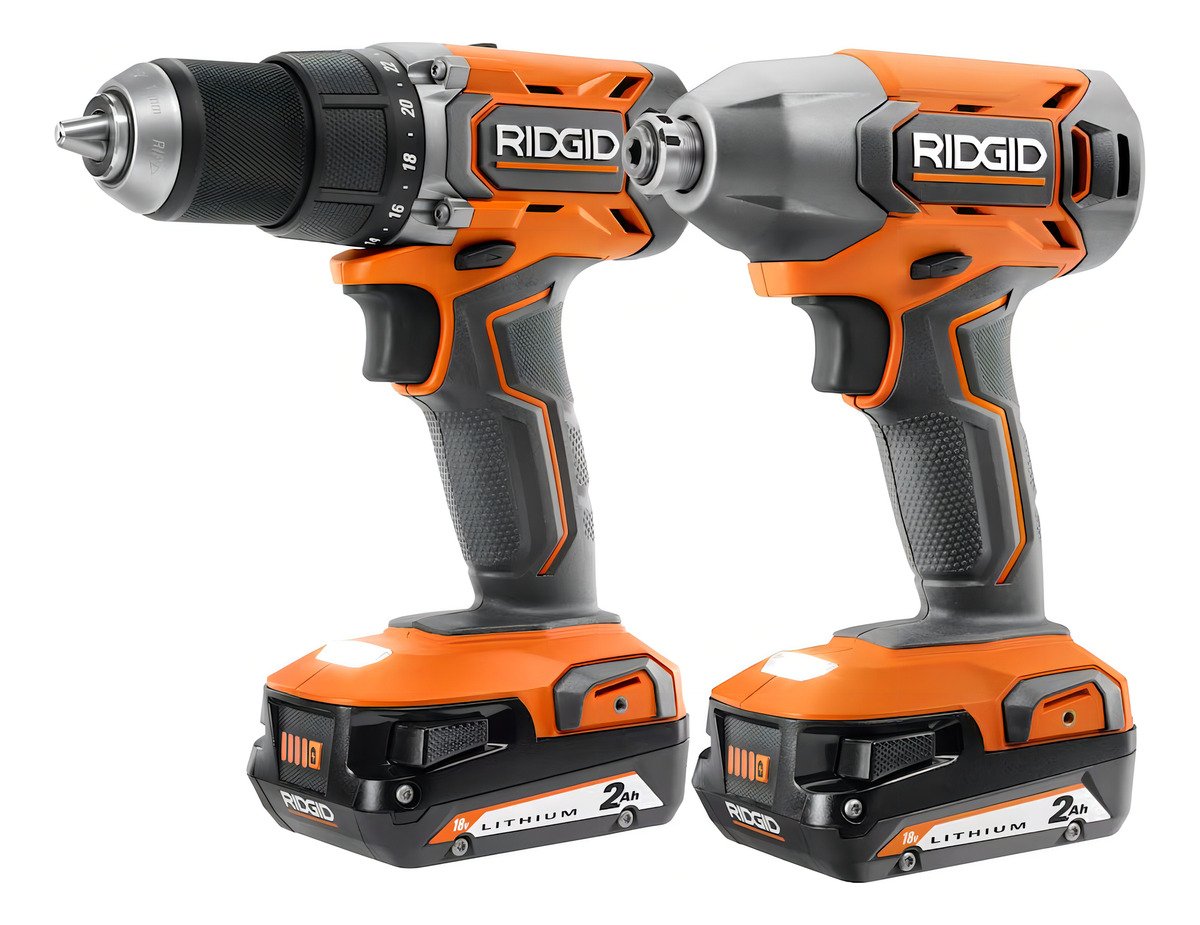 Kit combinado de 2 herramientas inalámbrico de 18 V R92721. Este kit incluye un taladro/destornillador de 1/2 pulg., un destornillador de impacto de 1/4 pulg., (2) baterías de 2,0 Ah, cargador y bolsa de herramientas.
